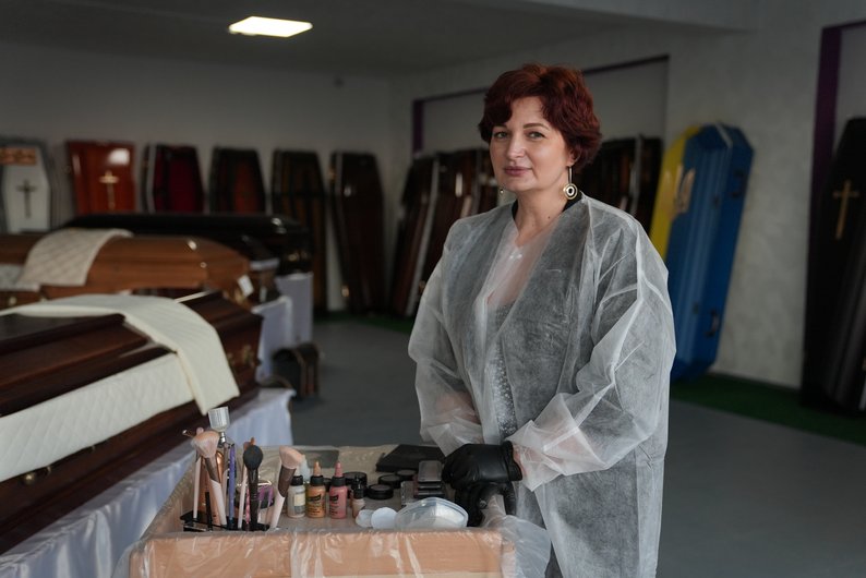 Василина Павлюк проводить гримування тіл як вдома у померлих, так і в приміщеннях ритуальних бюро. Керівник одного з таких закладів, Дмитро Тернівський, розповідає, що про посмертний макіяж дізнався близько двох років тому, перебуваючи за кордоном. Він працює у ритуальній сфері п’ять років і зазначає, що культура цієї послуги в Україні тільки починає формуватися.